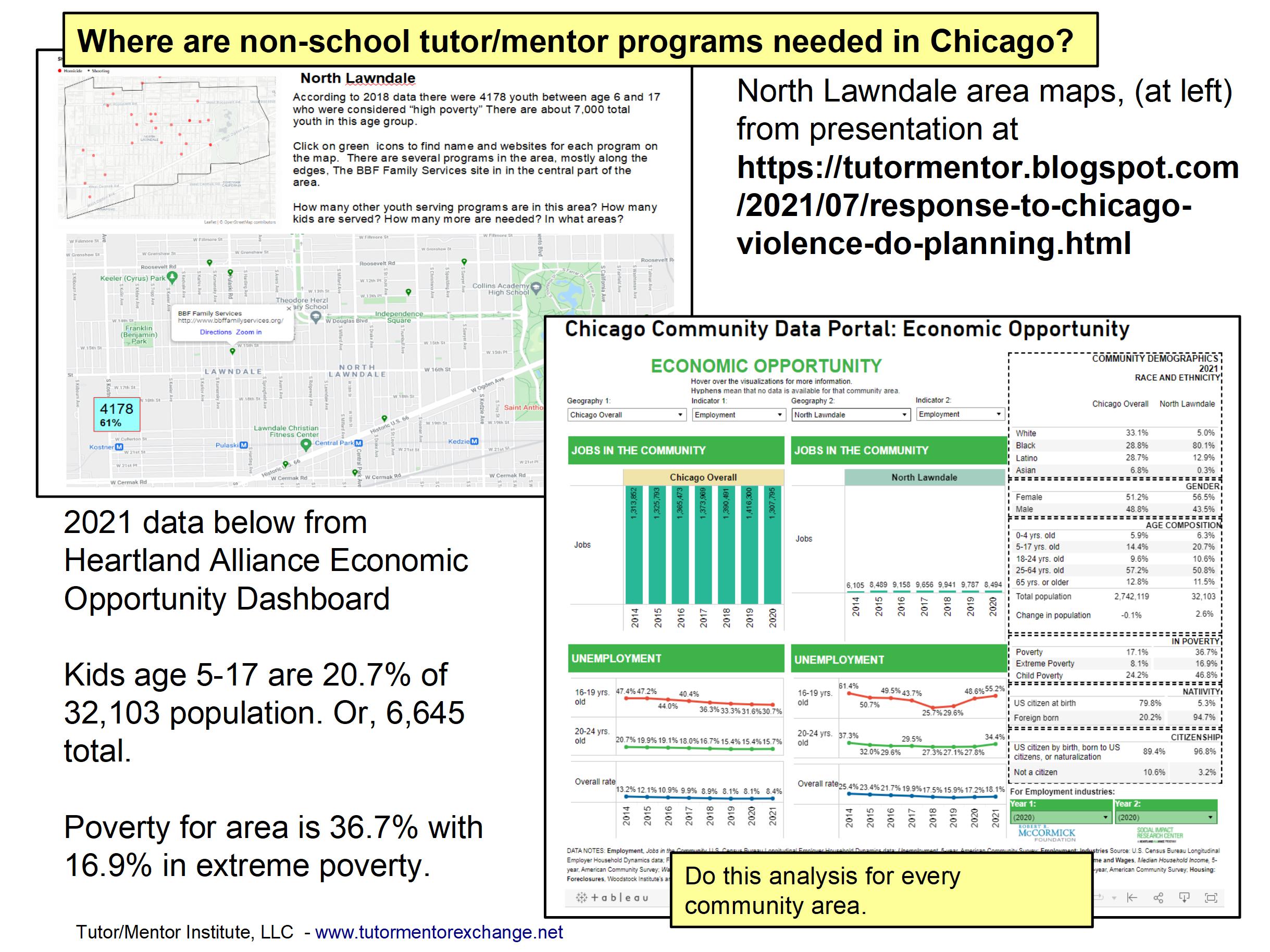 You could follow news stories with map stories. On your map you could not only show existing tutor/mentor programs, but you could add layers showing businesses, hospitals, faith groups, universities who share the same geography and who should be innovative and strategic in helping mentor-rich non-school programs grow in the area. For each part of the city the mix of programs and assets is different.
